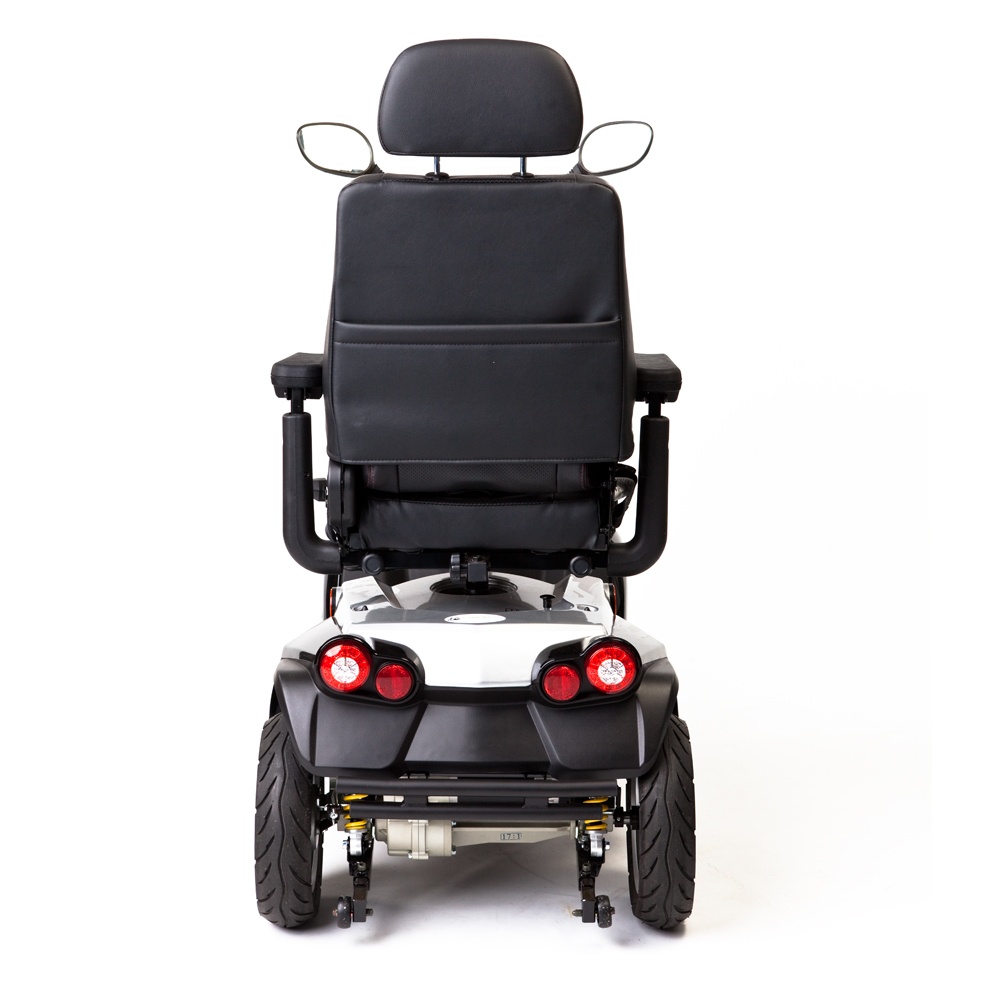 Met extra beenruimte door de verlengde wielbasis is de Maxer ook ideaal voor langere gebruikers. Deze scootmobiel biedt standaard een groot aantal luxe extra’s, zoals een verstelbare “deluxe captain”-stoel met hoofdsteun en veiligheidsgordel, twee achteruitkijkspiegels, volledige LED-verlichting, een opbergmand onder het stuur en een handige uitbreidingsbeugel onder de stoel voor extra bagagemogelijkheden.