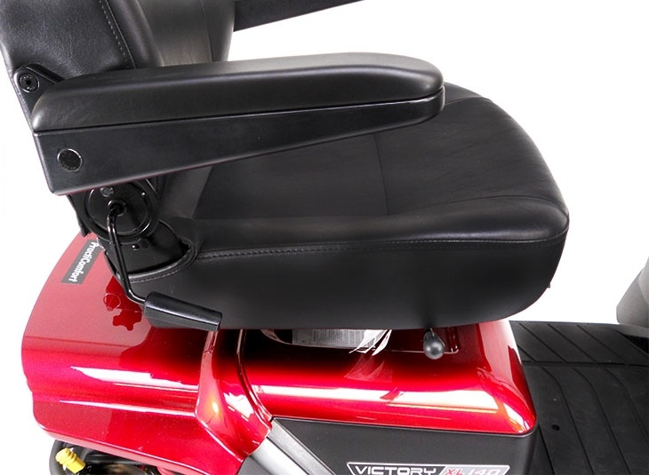 De Pride Victory Xl140 is het grootste model onder de nieuwe generatie Scootmobielen. Met een actieradius tot 45km en een topsnelheid van 15 km per uur is de Victory XL140 van Pride Mobility een Scootmobiel voor de veeleisende scootmobielgebruiker.