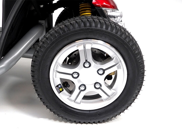 Een robuuste Scootmobiel met 4 wiel vering, mede door het bandenprofiel is deze Scootmobiel geschikt voor bos, grint en zandpaden.